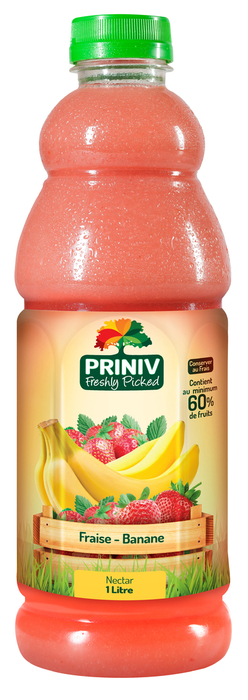 Le nectar de Banane Fraise Priniv comporte au minimum 60% de fruits !